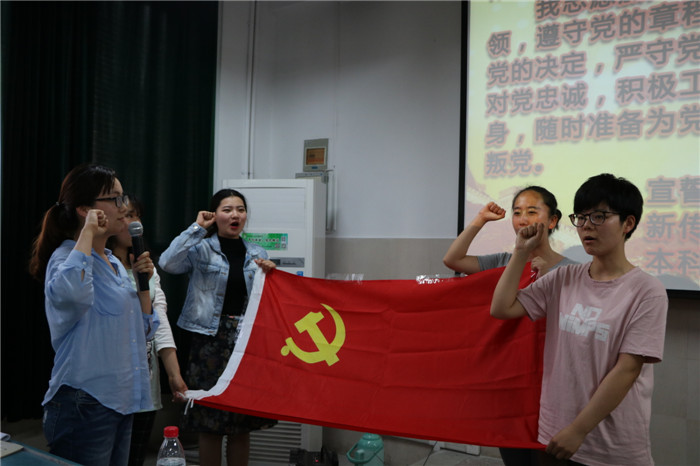 最后,孙月婷老师带领全体2013、2014级本科生党支部新党员进行入党宣誓。在庄严洪亮的宣誓声中,本次结业典礼暨宣誓仪式圆满结束。(文/姚倩倩 图/钱悦等)