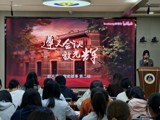 本次汇报采用“影像展映+主题讲解”的创新形式,7个学习小组依次呈现精心准备的党史教育专题。第一组学员以纪录片《烈火,鲜血与旗帜》开篇,通过共产党员在不同历史时期冲锋在前的生动影像,展现榜样力量的永恒感召。第二组聚焦《“黔”进的力量》,以遵义会议为切入点,解读中国共产党自我革命精神的历史传承与现实启示。