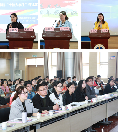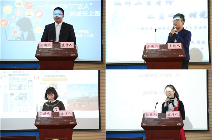 14位来自2012、2013级6个专业的新传优秀学子通过PPT的现场汇报自身在专业学习、社会实践、专业赛事、创新创业、志愿服务等方面丰富经历。简短而精炼的汇报勾勒出一批优秀新传学子充实而富有意义的大学时光,展现出公司优秀学子的卓越风采。