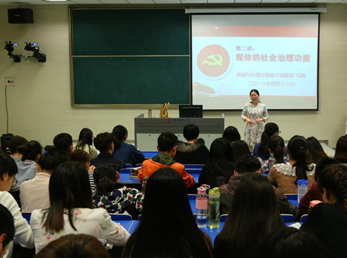 马梅总结了媒体的社会治理功能以及面对日新月异的媒介环境,媒体应该采取哪些内部措施。最后,她以习近平总书记对广大新闻舆论工作者的要求,对党课班的学员们指明了未来的努力方向:做时代风云的记录者、做社会进步的推动者、做公平正义的守望者。整个讲座中,马梅联系实际,内容紧凑充实,列举了大量现实中生动有趣的事例,使党课班的学员们对媒体的社会治理功能有了更深的了解与认识。(文/曹青青 图/赵梓余)