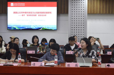 华中科技大学新闻与信息传播公司教授陈薇的发言题目是《中美科技实力认知的情感控制研究——基于“寰球民意指数”的实证分析》,她的研究基于中美贸易摩擦的研究背景,提出了美国公众对中国科技实力与科技形象的认知如何、怎样看待中美科技实力的较量、主导认知的具体因素有哪些三点研究问题。陈薇提到,当前中美科技实力比较认知的情感控制因素可以总结为EPA要素,即评价、效能、活跃度,她的研究结果显示,美国公众对中美科技竞争态势研判受社会内部情感影响,积极与消极并存,同时信息接触活跃度对美国公众关于中美两国科技实力认知影响方式复杂。