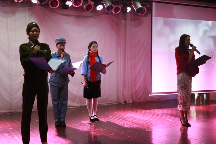 不仅单人朗诵掌声不断,多人朗诵更是体现出朗诵的形式多样。同时舞台剧的形式体现出播音学子的创新性。来自13级胡晓菲等同学原创节目《当青春成为抗战的旗帜》以南京大屠杀为背景,讲述了在大屠杀走散的四对姐妹为了中国的胜利身在不同的环境当中,但是他们都有一个共同的身份中国共产党人。荡气回肠的故事情节让现场的老师同学们感动落泪。同样是舞台剧来自13级刘雪纯等同学自编自演的《小时代》活灵活现,给现场的老师同学们一场来自身边的《小时代》。来自13级杨雨欣等同学带来的小品《配音秀》目更是带领大家不断现实影片转换。同学们细致准备、精心策划的汇报演出得到在场领导老师和同学们的高度评价和认可。