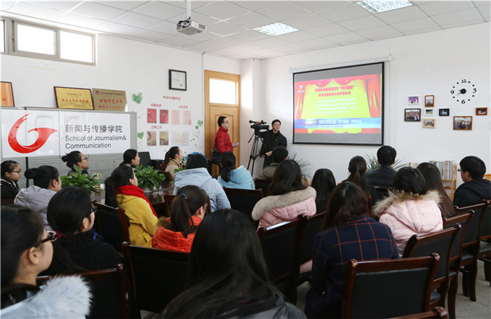 高思杰,安徽省阜阳广播电视台记者,从事新闻行业18年来,平均每年发稿300多条,三分之二被央视和省台选用,72件获得央视优秀节目奖、安徽新闻奖等奖项。他始终坚持亲临一线,深入田间地头,把火热实践作为报道主题,把普通百姓作为报道主角,反映基层人民心声,弘扬社会主义主旋律,被称为“裤腿沾满泥土的新闻人”。与此同时,他为艾滋病孤儿捐款,为白血病孩子募捐,为弃婴找寻更好出路,一直用善行义举做着无言的宣传。12月21号中宣部在中央电视台发布时代楷模先进事迹,高思杰当选为时代楷模。会议室内,学员们聚精会神,认真观看安徽电视台对高思杰的报道。