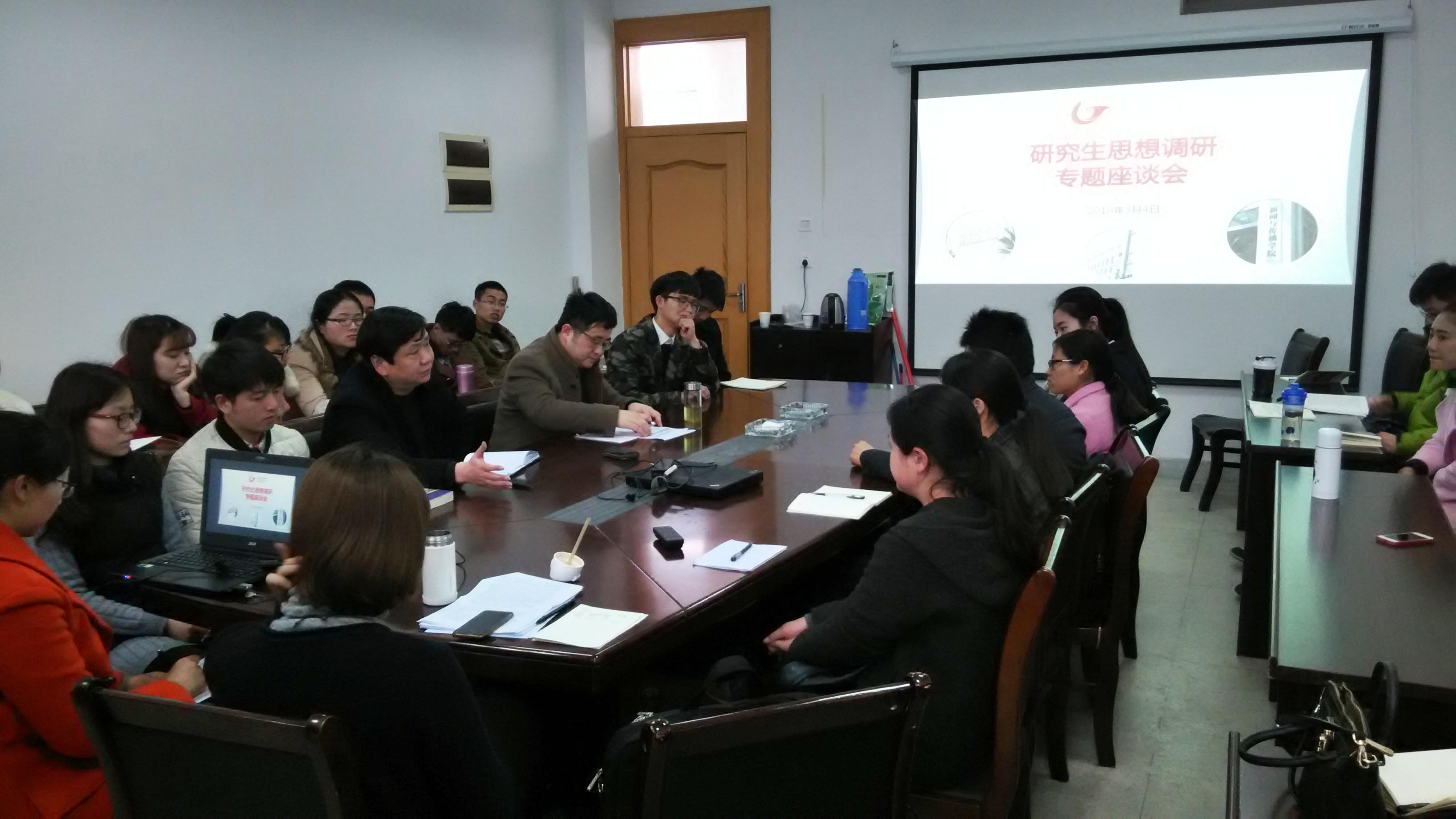 会上,同学们结合各自专业情况,对研究生的教育与管理提出自身的意见和建议,如增加对外学术交流的机会、丰富研究生第二课堂活动、支持研究生实践创作、提高生活保障水平等等。辅导员吴欣慰对研究生们在思想、学习、生活、就业等方面的存在的突出问题进行了梳理,以过来人的身份与同学们分享和交流研究生期间的学习生活经历,并针对同学们正面临的困难和问题,提出了自己意见与建议。