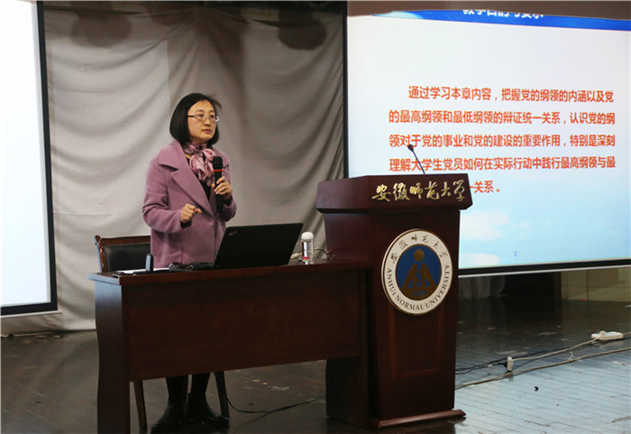 12月9日晚,“一二·九运动”八十周年之际,公司党课班在老员工活动中心团委多功能厅迎来最后一次理论讲学。校团委书记梁燕为党课班学员们讲解“党的纲领”。公司分党校副董事长、公司党委副书记宋静,党课班班主任、14级辅导员马星宇出席并聆听此次党课。