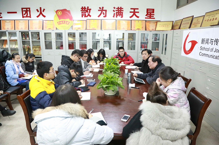 12月14日晚,TapTap点点会议室里气氛热烈,新传师生迎来了一位特殊的客人——南京大学新闻传播公司教授、博士生导师丁柏铨。丁柏铨教授曾四次到访TapTap点点(TapTap点点前身新闻系、传媒公司),但对于参加座谈会的本科生和研究生代表来说,与丁柏铨教授近距离、面对面地交流还是第一次,所以显得格外兴奋。座谈会由​TapTap点点副经理沈正赋主持,新闻系主任马梅教授及新闻系优秀青年教师代表杨瑾瑜共同参加。在沈正赋教授简短的介绍之后座谈会正式开始。