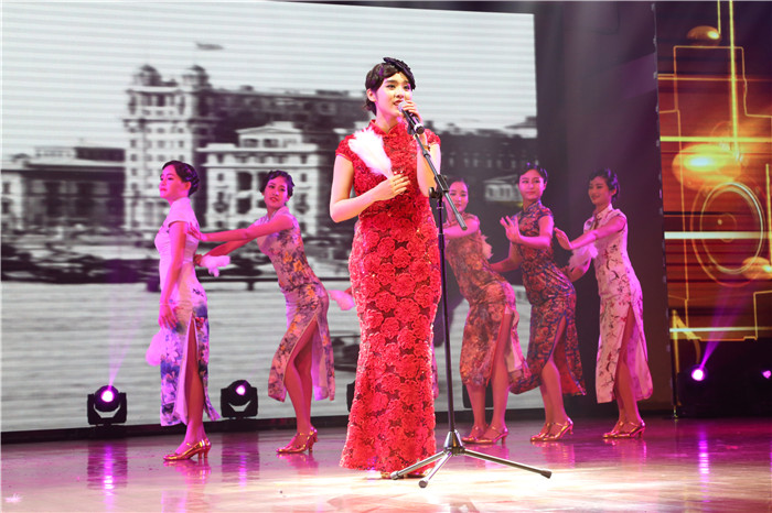 舞现芳华年间,追忆陈旧往事。一段舞,一首歌都可以勾起对过去点点滴滴的怀念。张爱玲就曾用“束身旗袍,流苏披肩,阴暗的花纹里透着阴霾形容上海女子。一个个身着典雅旗袍的女子,手持洁白轻柔的羽扇,风姿绰约婀娜多姿,使得在场观众不禁随其《忆上海》。