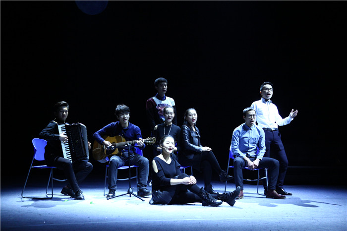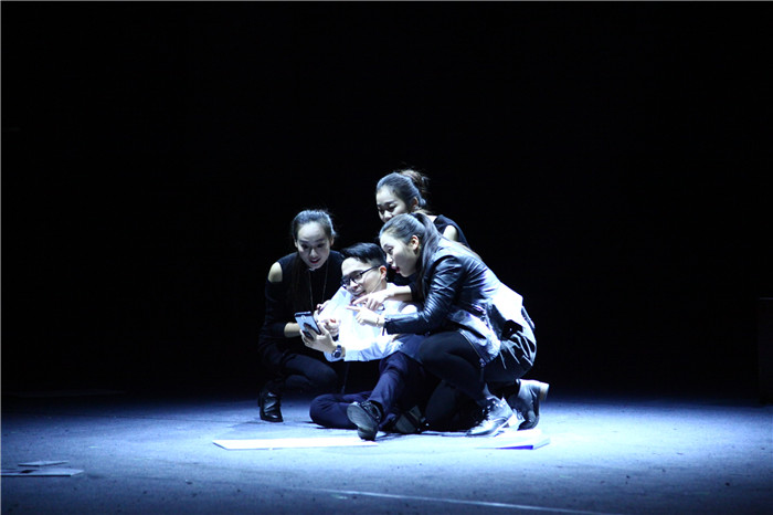 多幕话剧《摩登时代》,借用1936年上映的卓别林经典电影《摩登时代》之名,用先锋话剧的手法反映新媒体时代下,媒介工具对人,尤其是对年轻人生活的影响,此剧通过不同场景的舞台呈现,试图描摹当代人在媒介环境下的生活掠影。剧中无特定角色设定,人物关系及故事主线,创作者希望打破传统的戏剧结构,用夸张、荒诞和符号化的象征手法,反思当今时代人与媒介工具的关系。该话剧经过四个多月的剧本创作,几易其稿,又历时三个多月的排练,于六月份完成了参演版话剧的录制与剪辑工作,作为公司选送的唯一一部专业组话剧,报送省教育厅。其间,校团委多次组织专家评审,高效有序地帮助剧组完成了剧本创作、演员遴选、排练完善、集训提升、录制剪辑、现场巡演等工作。