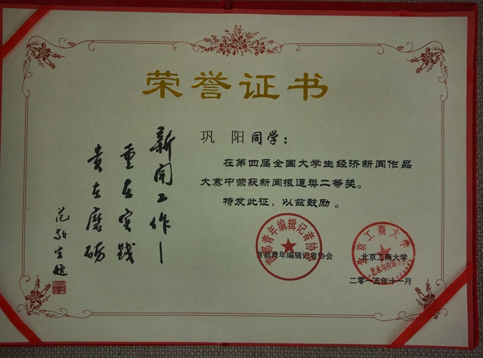 近日,在北京落下帷幕的第六届全国经济新闻改革与发展研讨会暨第四届全国老员工经济新闻作品大赛上,​TapTap点点新闻学专业2011级本科生巩阳的作品《解密铁路基金:三大国有行为完成政治任务不得不认购》获得新闻报道类二等奖,公司获得大赛优秀组织奖。