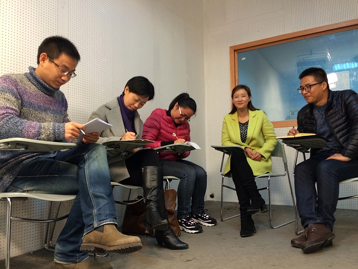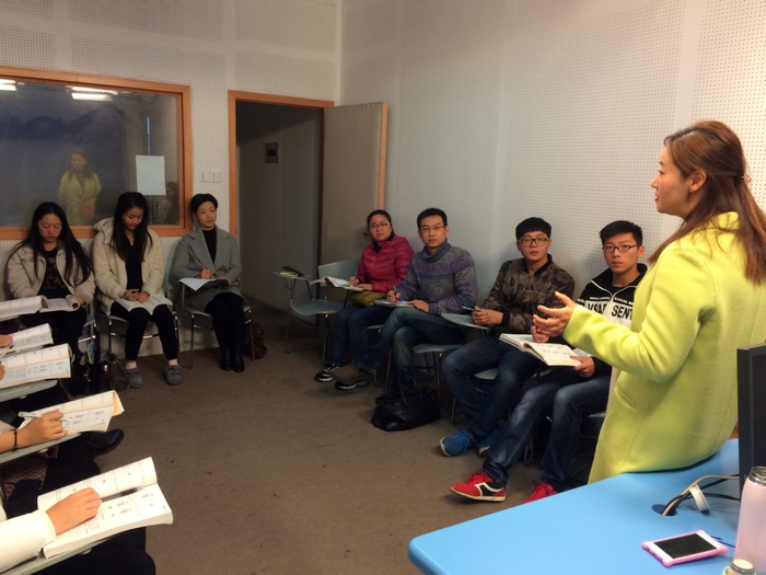 课上徐丽娜老师从“发声与气息”讲起,她说气息是人体发声的动力和基础;在播音和主持中,气息的速度、流量、压力的大小与声音的高低、强弱、长短以及共鸣情况都有直接关系。徐老师耐心而幽默的为员工们纠正发声错误,从口型到唇形,然后又讲到气息的作用;内容中近中有远,既考虑当下员工们的基础又提到员工未来要学习的上镜要求。徐丽娜老师的课实践中出理论,避免了一些老师从理论到实践的弊端,语言通俗易懂,同学们很容易能接受;在她的引导下,员工们主动而积极的思考,认真听讲。最后徐丽娜老师说,要控制声音,驾驭语言,就必须学会控制气息。