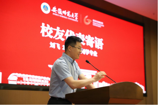 第三篇章“彼此的未来守望”搭建起员工与母校的联结桥梁。副经理周伍为 15 名员工联络员颁发聘书,推动员工工作发展,构建长效交流平台。接着,2003级新闻学专业院友、安徽广播电视台安庆记者站副站长刘飞以“扎根泥土,仰望星空”为题分享从业 18 年的感悟。他用蹲点野寨中学的《山区学子的强军梦》、记录盲校教师的《人生需要这首歌》等获奖作品为例,强调“真正的作品需要时间沉淀,更需要悲悯之心”,并向学弟学妹们传授“到现场去、永远热泪盈眶、下‘笨’功夫”的职业密钥。