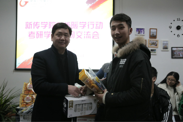 慰问会上,领导老师们纷纷为考研学子给予鼓励并做了经验分享。宋静表示,在现代激烈的社会竞争中,年轻人应该不断地提升自己的学识水平和综合技能,塑造自身的核心竞争力,只有这样,才能立于不败境地,正所谓‘天道酬勤,狭路相逢勇者胜’。沈正赋则向考研同学们强调:积极备战不等于盲目复习,要有针对性地对考试科目进行科学规划,要做到专一、专二齐头并进。胡靖用轻松幽默的考研形式分析为考研同学们加油打气,并代表院领导班子向考研同学们送出了最真挚的祝福,预祝所有奋斗的同学们心想事成,圆就梦想。