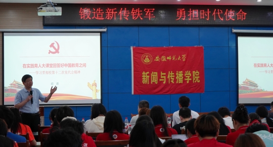 “任何收获都是汗水浇灌的成果,我们要打破理想与现实的枷锁,实现成果化的创新”。最后,胡靖寄语新传师生,希望师生们把握专业能力,在社会实践中看中国、懂中国、爱中国、为中国,用奋斗书写青春底色。