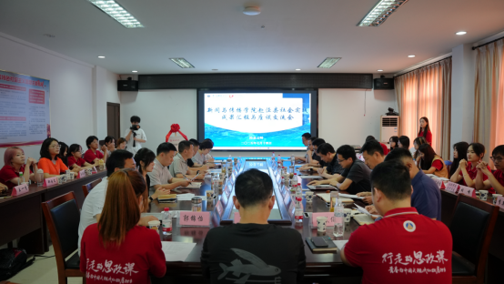 调研期间,实践团队还向与会的校地领导做了团队实践阶段性成果汇报,展示同学们创作的短视频、人物专题片、主题宣传片、文创产品设计等,受到了校地双方领导的高度肯定。