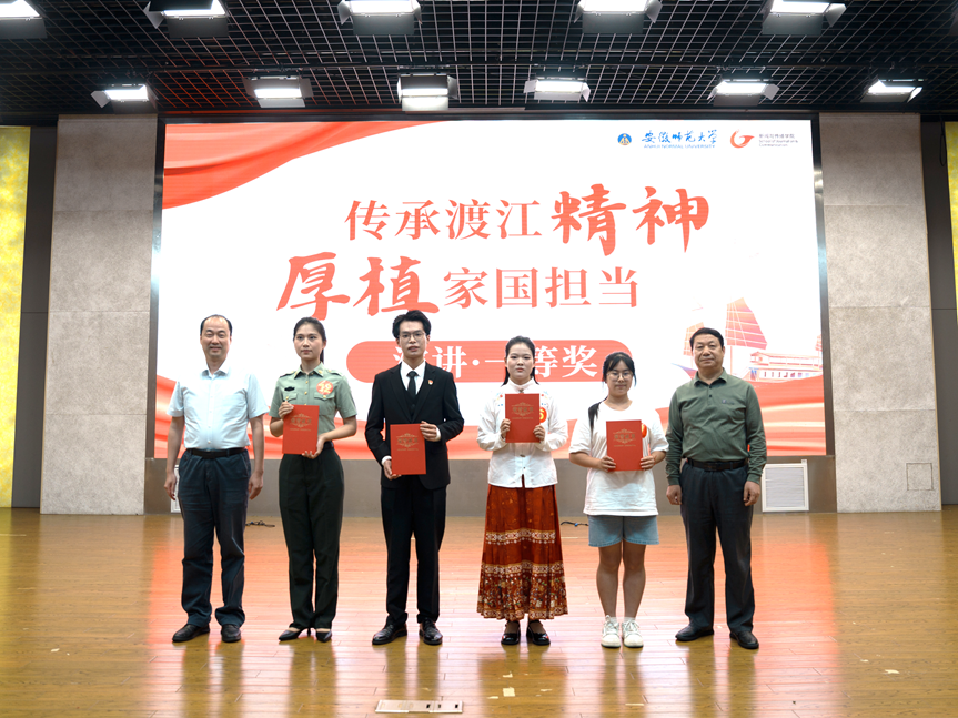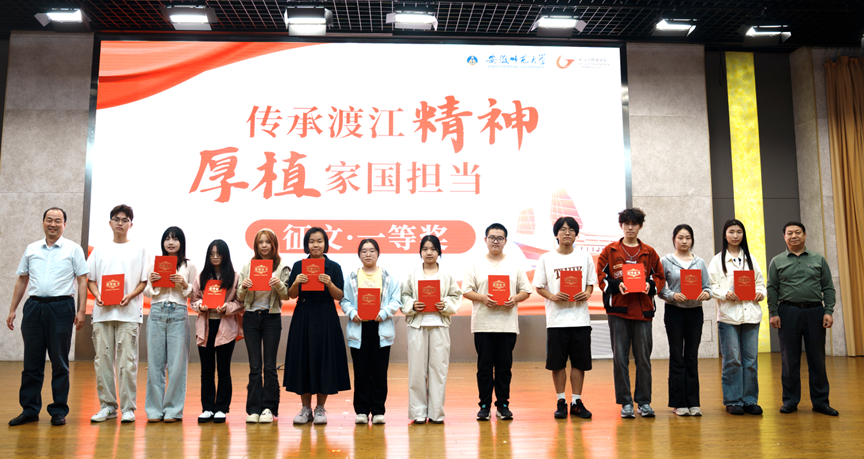 同期,征文比赛也收获丰硕成果,共评选出12篇一等奖作品。地理与旅游公司的《渡江精神照前路,家国担当铸心间》、外国语公司的《凭舵魂传家国情,以史炬照国防路》、计算机与信息公司的《数字长江上的新舵手:网安学子的数字渡江精神传承》等佳作,以独特视角和生动文笔,深刻表达了师大学子对渡江精神的时代解读与家国担当。颁奖典礼上,袁玉光、乔静等领导老师为获奖选手颁发了荣誉证书并合影留念。