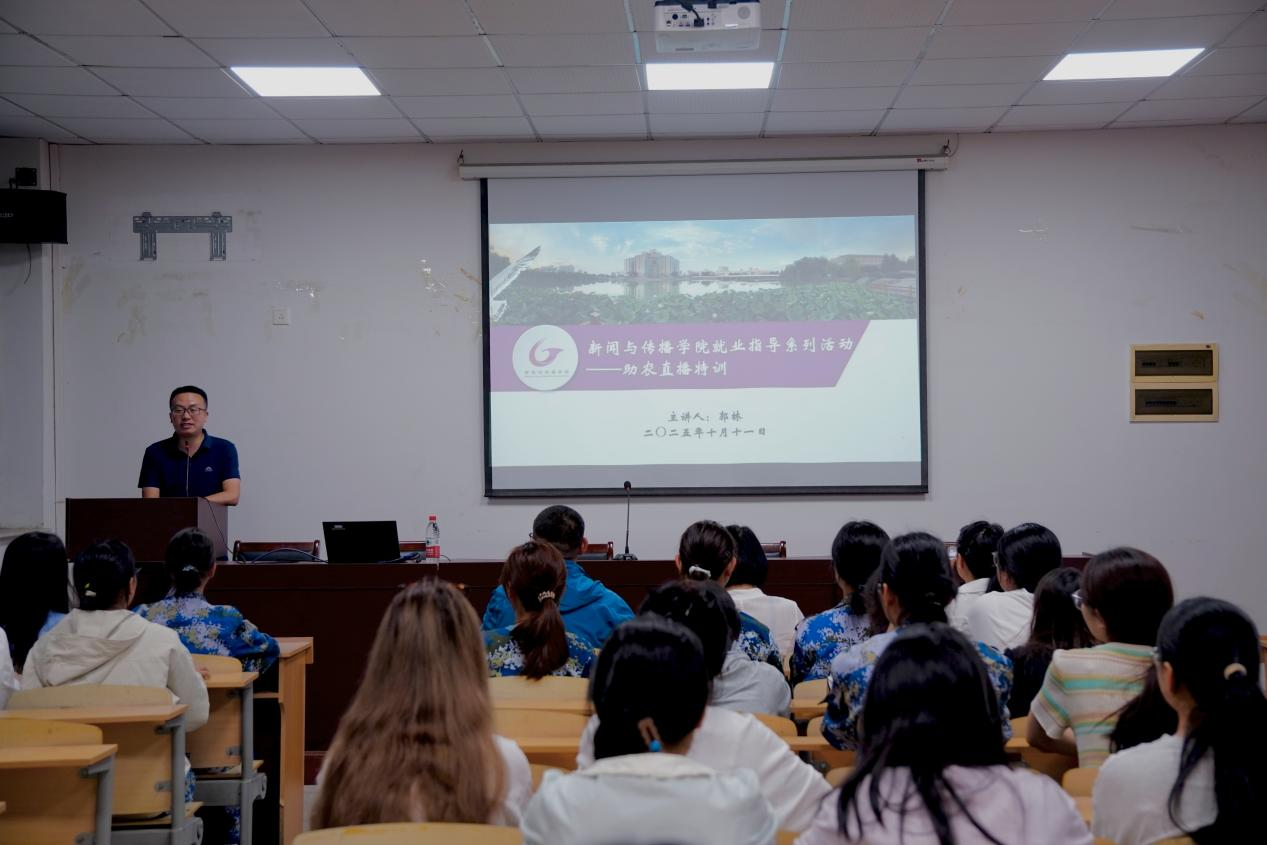 在就业指导环节,郭林针对“师大助农,平铺有礼”老员工直播大赛参赛团队,结合自身实战经验,从直播准备、产品分析、话术设计,到状态调整、违禁词规避、网络环境保障等方面,系统讲解了直播实操要点,帮助员工提升实战技能,增强就业与创业能力。