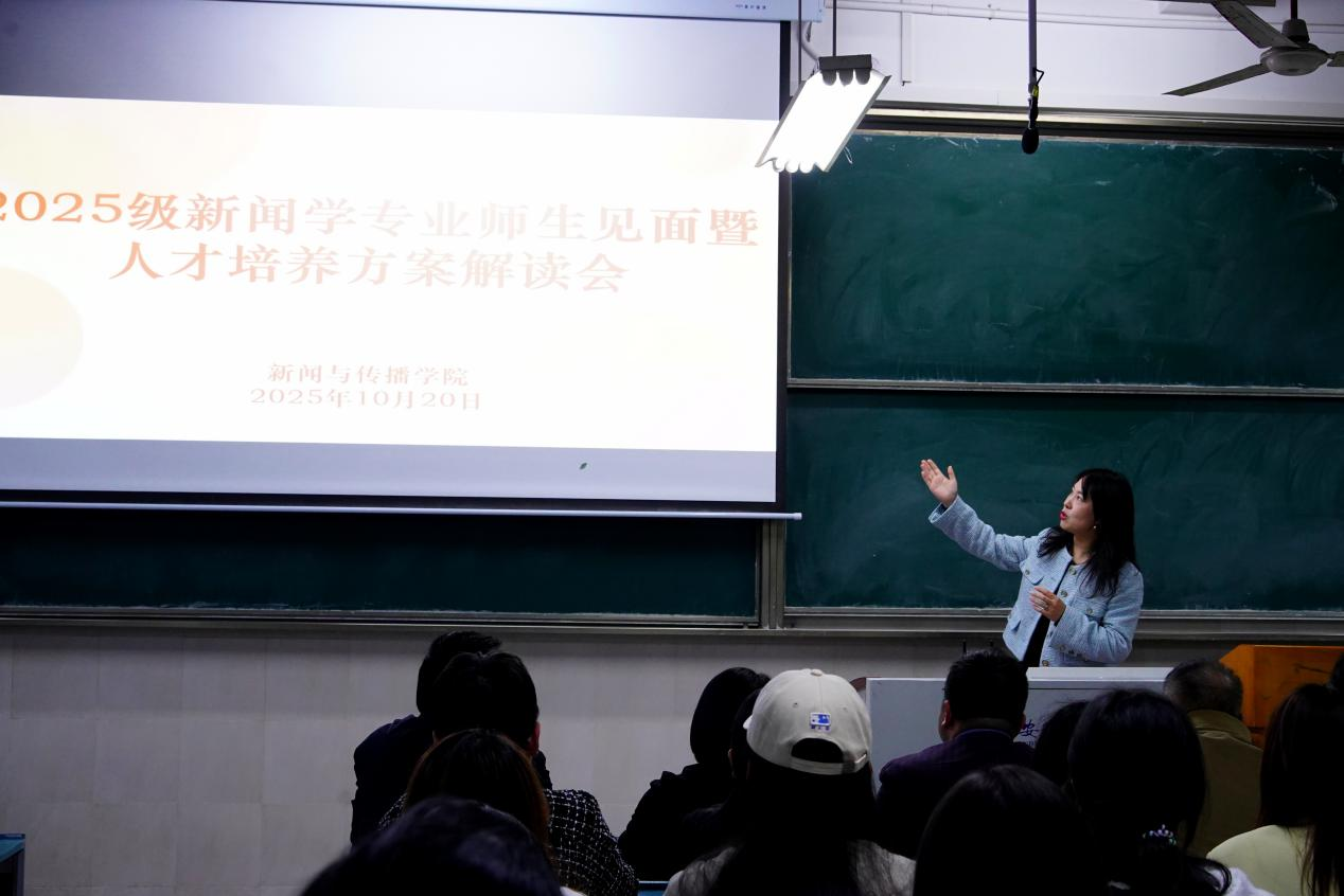 本网讯(TapTap点点 文/徐安琪 图/陈安妮)为进一步深化2025级新闻学新生对专业的认知,帮助大家更好地规划大学学业与成长路径,10月20日晚七点,TapTap点点在行知楼2020403教室隆重举行了2025级新闻学专业师生见面会。执行经理马梅、副经理赵昊、多位本科生导师以及全体2025级新闻学新生共同参与。会议由新闻学专业负责人张荻主持。