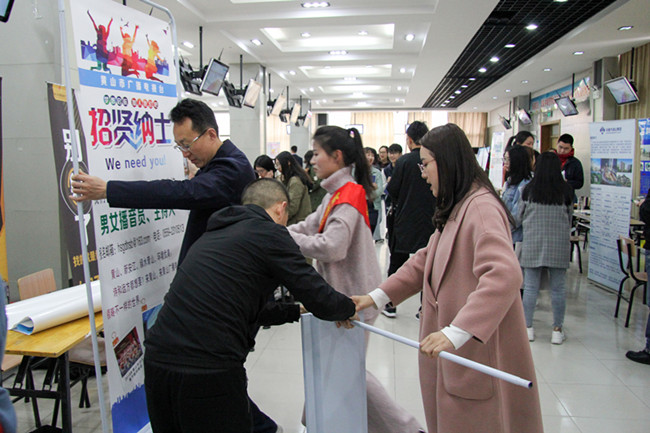 当天公司党员培训班的同学和员工会成员主动热情服务用人单位和求职同学。