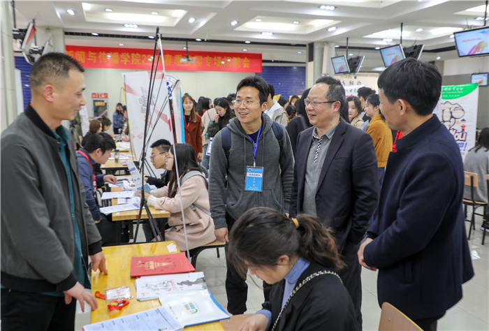 在现场招聘大厅,不同的企业用使出浑身解数采用不同的方式招贤纳士,有的启用企业讲解员,有的用人单位派发企业宣传资料,有的现场演示企业形象宣传片,有的在现场还召开了企业宣讲会……企业求才心切可见一斑。每家招聘单位展位前也都挤满了前来应聘和咨询的员工,用人单位耐心介绍从事相关岗位工作的技能要求及薪酬待遇等信息,部分应届毕业生对于一些企业的发展概况,职业发展方向等问题提出了一些自己的顾虑和看法,企业负责人对此也进行了详细解答。新闻、播音专业的员工主要选择报社、广播电视台等单位应聘;网络新媒体专业和广告学专业员工则选择在文化传媒公司驻足;空乘和部分播音专业员工则对旅游地产等兴趣十足。毕业生在递交简历后阐述自身特长和工作愿景,回答招聘者问题;也有许多员工在仔细咨询后填写了应聘材料,留下联系方式,等待后续结果通知。其他各年级特别是2016级员工也对心仪城市的部分企业了解实习岗位情况,以期为7月份开始的专业实习打好基础。