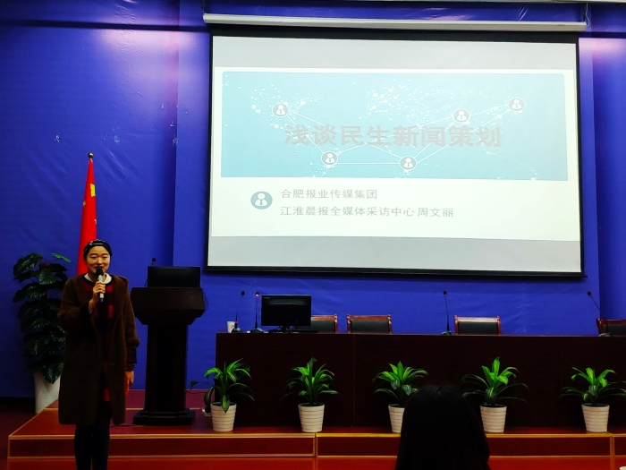 周文丽主任主要围绕着“民生新闻在当今纸媒中的地位之变”“民生新闻策划案例分析”两大内容展开。她从《江淮晨报》自身特点展开,对比十年前和当下的变化,指出,如今新闻宣传工作有更高要求,以往报社地位排名第二的社会新闻部渐渐收紧,调查监督类报道的质量和高度深度要求更高,内参形式更显重要。紧接着,又以“最美坐姿系列策划”“暴雪系列策划”“生命教育策划”“公办养老院策划”等为例,讲述策划流程。