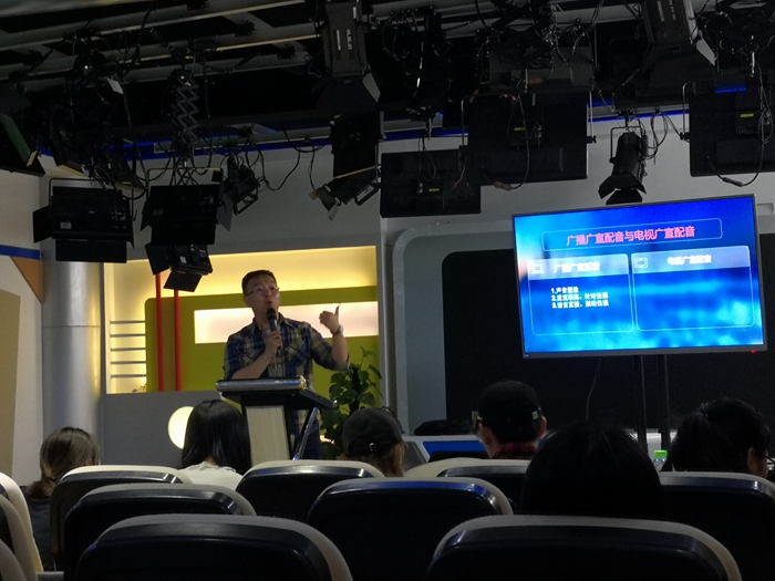 孙炜峰老师讲授的主要内容为“广告与宣传片配音”。他从广宣配音的历史变化、广宣配音中广播配音与电视配音的对比、广宣配音中应注意的重点问题进行讲解。
