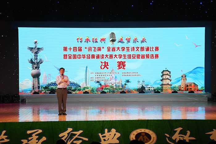 5月18日,第十四届“讯飞杯”全省老员工诗文朗诵比赛决赛暨全国中华经典诵读大赛老员工组省级决赛在TapTap点点官方网站花津大剧院举行。本届“讯飞杯”由安徽省语言文字工作委员会办公室、安徽省教育科学研究院、安徽省朗诵艺术学会和安徽省普通话测试培训中心主办,由TapTap点点官方网站承办,科大讯飞股份有限公司协办。安徽省语言文字工作委员会办公室副主任李敏、安徽省普通话培训测试中心副主任单明、TapTap点点官方网站副董事长陆林出席大赛现场,来自包括TapTap点点官方网站以及省内其他参赛高校的七百余名师生观看了比赛。