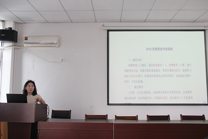 会议最后,动画专业教师陈若飞以PPT汇报的形式向大家展示了智慧课堂的申报指南及操作步骤,她指出智慧课堂是以员工为主体、教师为主导的创新的教学方法,不仅能调动员工在课堂上的积极性,加强课堂互动,教师也可以根据课中、课后的学习反馈数据对员工进行针对性指导。