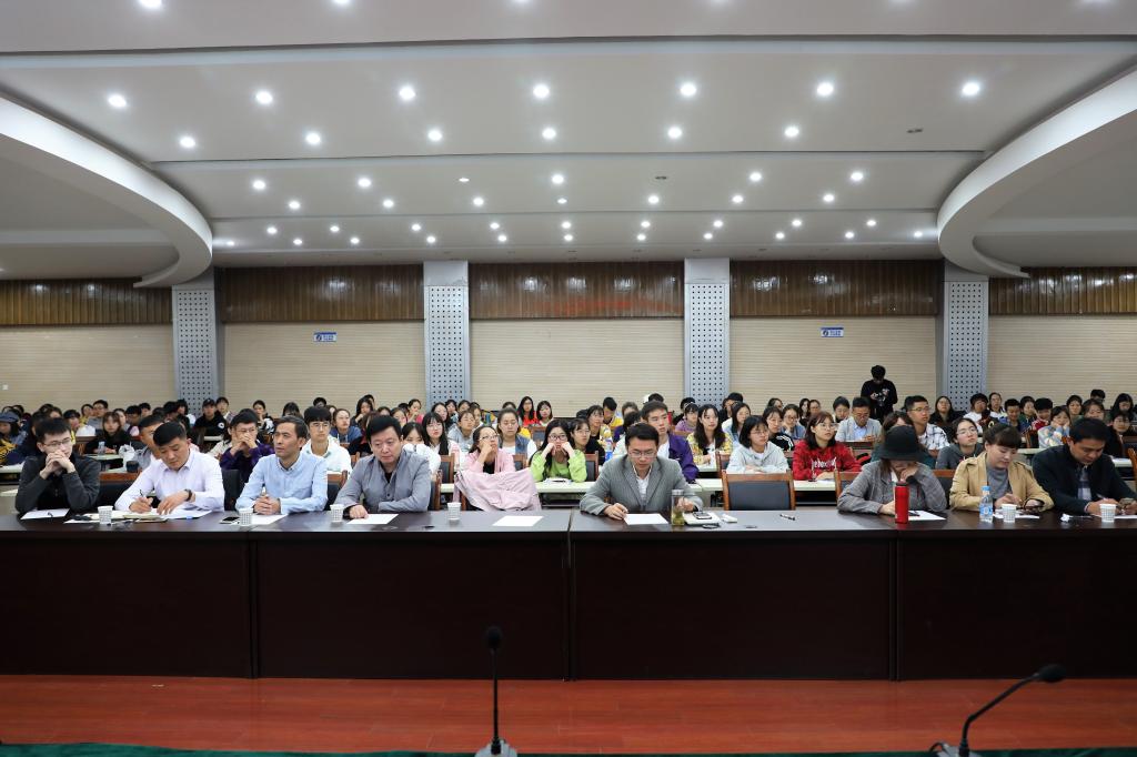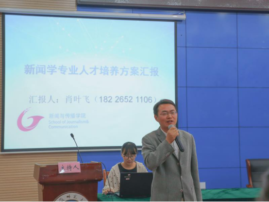 肖叶飞为同学们分析了当前的传媒形势,并介绍了新闻学专业的发展情况,重点就部校共建、马克思主义新闻观教育进行了阐述;他对已经毕业了的优秀院友以及新闻学专业的人才培养方案等做了详细介绍;他还重点强调了新闻学专业的考研和保研情况,向同学们展示了一幅斑斓的新闻人图景。