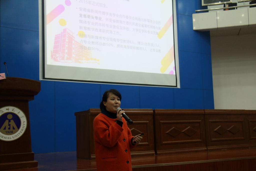 在首批见面会上马梅首先致辞,她对2019级新闻传播学类新生加盟新传表示热烈欢迎,对新生在军训期间展现的良好风貌给予充分肯定。随后她就公司发展、专业设置、人才培养理念以及新闻传播学类大类招生等情况做了详细介绍。她还就一年后的专业分流等同学们密切关注的问题做了阐释,并用自己的人生经历为新生打气加油。