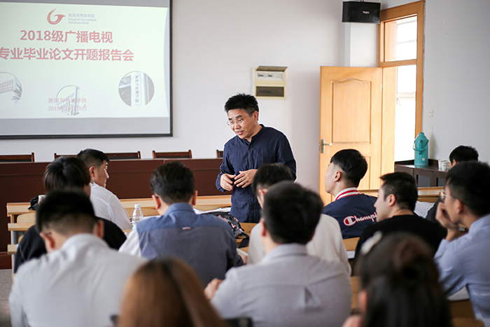 此次开题报告会共有11名2018级广播电视专业员工进行了开题报告答辩,同学们依次通过PPT演示的方式,具体阐述了自己的选题背景、选题意义、研究方法、内容框架、视频作品制作进度等方面的内容。同学们的毕业论文选题涵盖了影视套拍纪录片、城市形象宣传片、真人秀节目等多个广播电视研究领域。参与评审的导师们详细指出了各位同学的开题报告中所存在的问题,诸如文献综述条理性不足、结构逻辑不合理、研究缺乏创新性、论文与视频作品关联性不强等问题,并且提出了科学合理的修改意见。