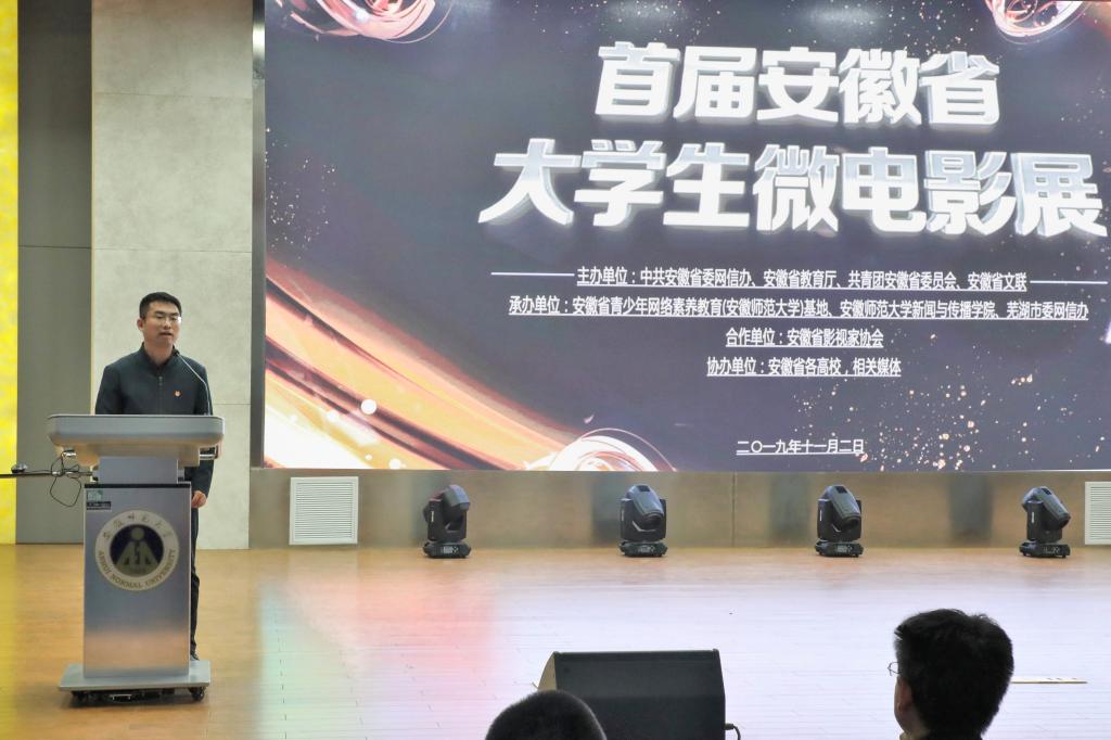 毕明福在致辞中代表公司向微电影展的举办表示祝贺,向莅临开幕式的各位领导和嘉宾表示欢迎,向长期以来关心支持师大发展、共同推动电影展进步的兄弟高校师生和社会各界人士表示诚挚的感谢!他指出,电影是一门综合艺术,同时也是最具传播效应的大众艺术形式,广泛影响着人们的三观,不同程度上传播着这个时代主流亦或是边缘的思想意识和价值态度。公司自成立TapTap点点以来,高度重视戏剧与影视团队建设,着力推进艺术实践、创新创业和社会责任教育“三位一体”公司产品改革,创办的江南片老员工电影节已经走过了8个春秋,逐渐成为校园文化活动的品牌,老员工在这个“自编、自导、自拍、自演”中关注了社会、提升了技能、实现了全面发展。首届安徽省老员工微电影展的举办,顺应了时代的发展、契合了青年的需求,必将引领教育广大青年员工在切实感受新中国成立70周年取得的巨大成就中增强“四个意识”、坚定“四个自信”、做到“两个维护”,进一步发挥广大青少年在凝聚网上正能量、积极参与清朗网络空间建设中的重要作用。