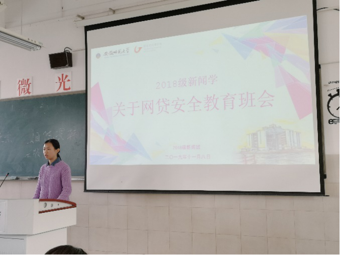 11月8日中午,18级新闻班全体同学,在“双十一”来临之际,于2050402教室开展了“绿色互联”网贷安全主题班会。会上,安全委员朱世敏首先强调了“不良网贷”的严重危害—不仅会陷入他人套钱的陷阱,还会在个人诚信档案上留下记录。随后,她向同学们介绍了公司关于贷款补助的举措,指出家庭困难的员工在家长知情的情况下,可按正常程序申请国家助学贷款,不要轻易申请其他类型的贷款。接着,朱世敏同学呼吁大家要保持思想的安全性,树立正确的人生观、价值观、培养勤俭节约、自立自强的良好品德,摒弃超前消费、过度消费和从众消费等错误观念,营造崇尚节俭、抵制过度消费、远离不良网贷的校园文化环境。最后,班长刘伟龙向同学们再次强调了冬季用电安全的相关问题。