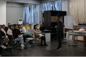 卞祥彬本次主讲课题为“中国电影第五代的崛起”,主要从历史背景、思想准备、美学创新三方面详细讲解了第五代的开始与崛起。由播放影视剧《大宅门》中张艺谋、陈凯歌等知名导演客串的片段引入,详细讲述了他们由1978年进入北京电影公司到毕业后进入广西电影制片厂,乃至成为中国导演界半壁江山的成长全过程。同学们不时认真思考,一堂课下来大家对第五代导演及他们的优秀作品熟稔于心。