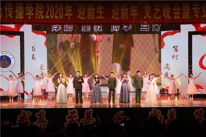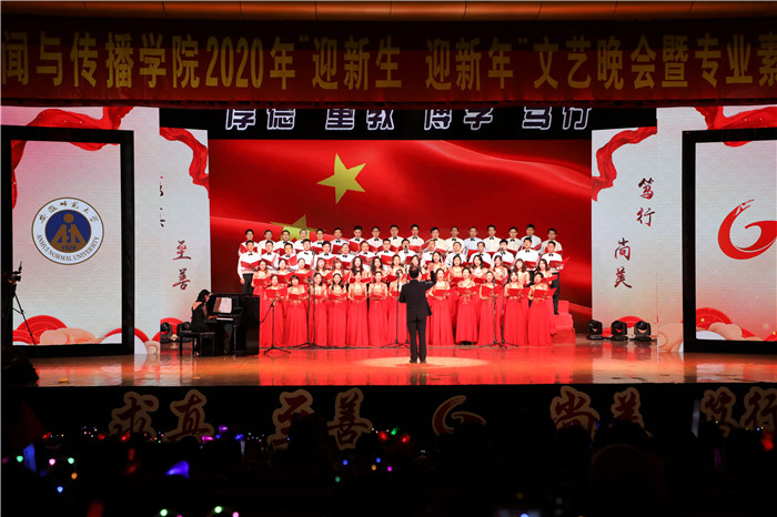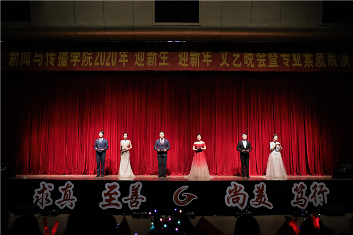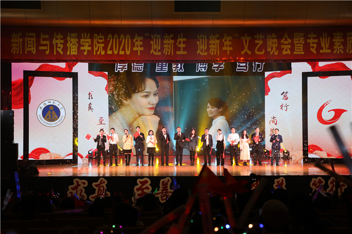 脚下有多少泥土,心中就有多少真情。一代人有一代人的长征,一代人有一代人的担当。用一年不长的时间,做一件终身难忘的事。新传直播间《支教团的故事》邀请研究生支教团成员分享自己的支教经历。他们秉持“到最幸苦的地方去,到最需要的地方去”的理念,到贫困地区服务中小学教育,用实际行动绘制了最美的青春画卷。回首即将过去的2019年,成长,陪伴,付出无疑是每一个新传人的年度关键词。晚会的最后,辅导员和专业老师登台,共同献唱《我们都是追梦人》,每一段旋律,每一句歌词无不倾注了教师们对新生和新年的美好期待。追梦之路,荆棘丛生;心怀梦想,手握繁星;竭力前行,无怨无悔;报国圆梦,新传风采。随后,一首《强国一代有我在》,新传学子寄情于歌,唱出了青年人在新征程中的使命,作为伟大历史进程的见证者和建设者,当代青年应成为完成复兴大业的“强国一代”,歌咏对祖国的真挚深情。晚会在欢歌笑语中圆满落幕。