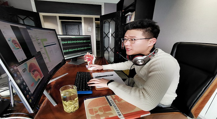 由于播音主持语音与发声课程性质的特殊性,需要同学们实践性的发音练习,所以高老师使用连麦的方式,一对一的根据同学所在的不同区域有针对性的纠正发音。疫情当前,采用这种连麦的网络教学方式,一方面既让连麦的同学清楚的知道自己发音的正误,另一方面也让其他在线的同学能够及时自查,提高了专业课的学习效率。