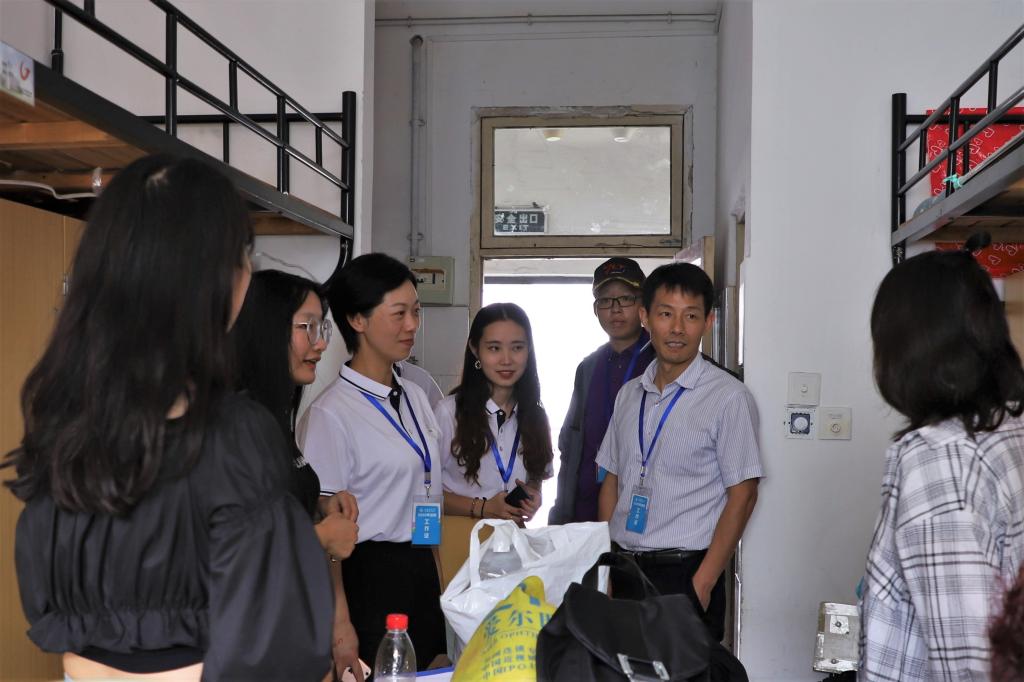 迎新现场,公司领导来到现场对工作进行指导,深入新生宿舍了解报道情况。