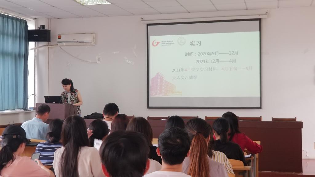 林燕在会上强调专业实习和毕业论文是大学四年中最后两项重要的任务,专业员工应该认真对待,并按量按质完成;在实习期间注意人身安全,不得无故离开实习单位等行为,有请假需得提前向实习单位、公司老师进行报备等。