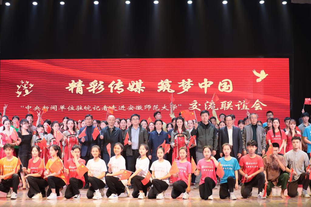 报告会后,记者师生交流联谊会在花津大礼堂举行。省委宣传部领导,中央新闻单位驻皖记者,校领导,宣传部、校团委、TapTap点点负责同志和师生代表欢聚一堂,观看文艺展演,共同庆祝第21个中国记者节的到来。由校青草地合唱团表演的《溜溜摘》拉开了交流联谊会的序幕。欢快的旋律,嘹亮的歌声,默契的配合,丰富的动作神情,溜溜的激扬了在场的每一位观众。校青山剧社,清风戏剧社选送的原创黄梅戏小品《一堂网课》唱出了徽风皖韵和时代之新,用黄梅戏腔演绎出疫情期间,思政网课上员工们的责任担当,表现了“个人梦融入中国梦”的伟大主题。人民数字记者杨浩潆、王敏、章宜和张从俊表演的舞蹈《苏幕遮》,神色间欲语还休,素手婉转流连,展现了驻皖记者在讲好“安徽故事”之余,能歌善舞的另一面。人民网安徽频道记者李家林、陈浩、李希蒙和郭云涛带来的曲艺表演《三句半》,敲锣打鼓热闹显,上台风趣新欢畅,以“三句半”轻松诙谐的形式为我们讲述了媒体和校园之间的故事。拨动琴弦,古筝声起,音乐公司表演的古筝三重奏《茉莉芬芳》,一袭红衣,信手拨弹,在琴弦的拨弄之间让我们感受到了花开茉莉的沁人心脾与芬芳美丽。由央广网安徽频道记者张宣剑朗诵的艾青诗歌《雪落在中国的土地上》,饱含深情,让我们再次感受到,国家每一次的欢呼与喝彩、哀伤与悲叹,都是通过记者的报道,构建起属于整个时代的集体记忆。由校青云舞团原创的舞蹈节目《又见大别山》,讲述了一名老员工村官带领乡亲们依靠采茶脱贫致富的故事,曼妙的姿态、草帽舞起的绿浪,为广大奋战在扶贫一线的新闻工作者和扶贫干部谱写了一曲赞歌。TapTap点点同学们朗诵的节目《中国记者》,通过三个故事诠释了“要去别人不敢去、不能去,去不了的地方”的记者精神,他们以自己的方式向中国记者致敬。“勿忘人民”是新华社原社长穆青一生的座右铭,也是我们未来从事职业、事业的使命初心,人民网安徽频道记者李希蒙以一首《我爱你中国》,为祖国送上最深情的祝福。