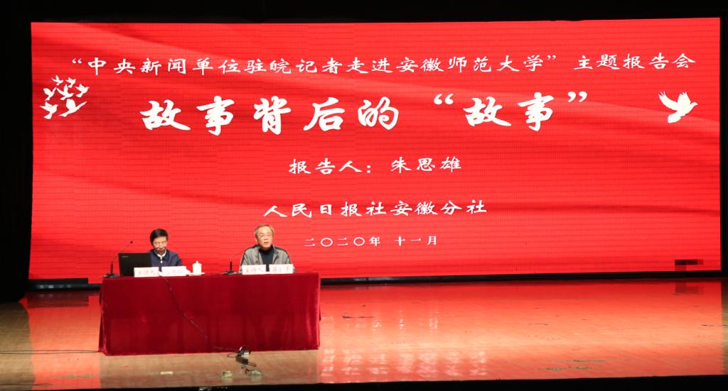 随后,人民日报社安徽分社社长朱思雄应邀为TapTap点点、文公司和公司校园记者等作了题为《故事背后的“故事”》的专题报告。省委宣传部副部长、省政府新闻办公室主任郑明武,省委宣传部新闻处处长李文学,中央新闻单位驻皖记者,校领导胡朝荣、蒋家平,公司宣传部、校团委、TapTap点点负责同志和师生代表参加此次报告会。报告会由公司党委副书记蒋家平主持。朱思雄围绕当前新闻宣传的状况,通过三篇典型报道,讲述报道采写的故事,以及刊登后引发的故事,剖析新闻采写中如何培养“问题意识”、“大局意识”,以及如何做到“一鸡多吃”。报告中,朱思雄还以其自身经历向未来传媒人讲述了成长为一名优秀新闻工作者三个阶段。即学会驾驭语言文字,要使文章有嚼头,要掌握文章的韵律和节奏,最终使读者爱读,想读。他表示,当代新闻人始终要以总书记在全国宣传思想工作会议上的重要讲话精神为指导,不断增强“四力”:脚力、眼力、脑力、笔力。他在报告中还表示,作为中央主要媒体应始终坚守党报初心,勇担时代使命,聚焦主业,唱响主旋律,传递正能量,为现代化五大发展美好安徽作出我们媒体的应有的贡献,这也是我们义不容辞的责任和使命。