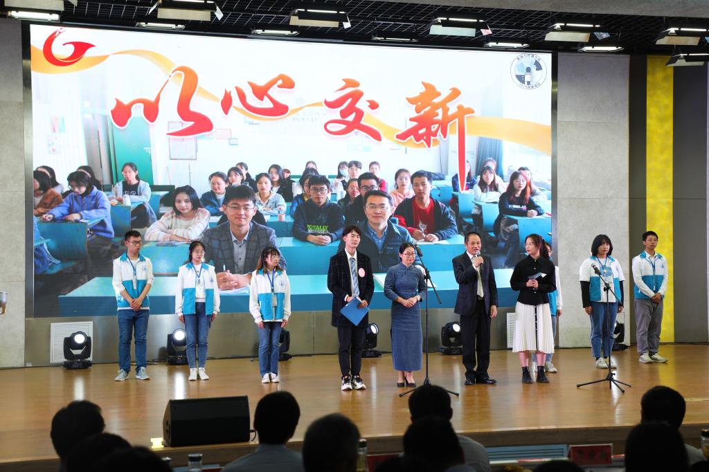 “我们是未来传媒人,在这里为您报道!”《以心交新》新闻访谈节目在2018级新闻学一班同学们的一句齐声高喊中落下帷幕,会场响起了激烈的掌声。