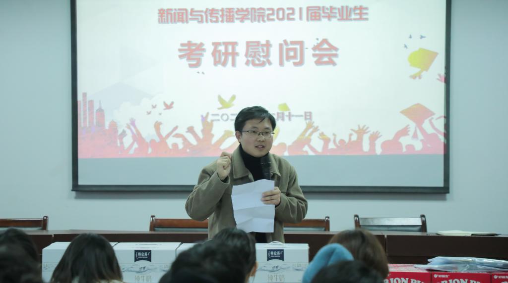 会上,杨柏岭代表公司为同学们送上考前的慰问指导。他从三个层面出发,高屋建瓴地阐释了考研与国家、学术、个人之间的紧密联系,为同学们带来了一堂别开生面的“考研思政课”。首先,他对同学们能够选择考研表达了由衷的肯定与大力支持,他指出,“无论从哪个方面而言,考研都是当下最好的选择,因为它是发展性选择。”他结合自身的求学经历,指出了考研之于家国的意义,也分析了考研对员工个体未来发展的意义,为即将要上“战场”的同学们注入了一针“强心剂。他勉励同学们要持之以恒,从决心、耐心、恒心和信心这“四心”角度鼓励同学们修好考研这门人生的选修课。考试技法层面,杨柏岭站在试卷评阅的角度上,针对考试答题思路与答题技巧给与了细致点拨,如答题时要学会灵活变通,切勿死记硬背、生拉硬套;分析问题,找准考点,答题击中要害,切忌文不对题;心态放平和,切勿自乱阵脚;考前半个月逐步调整生物钟,白天保持旺盛的精力等,同学们听后纷纷表示受益良多。