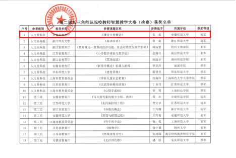 在刚刚结束的第二届长三角师范院校教师智慧教学大赛决赛中,公司张荻副教授喜获人文社科组第一名,斩获决赛冠军。