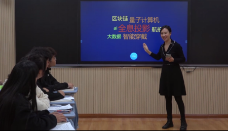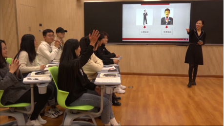张荻的课堂教学围绕“播音主持的性质”展开。课程开始,她首先通过“超星学习通”线上统计功能,找到了员工知识学习的薄弱点。然后利用一系列具有历史意义的新闻图片,组织了一场“背景猜猜猜”的抢答游戏。生动活泼的课堂不但带动了同学们的学习热情,还不着痕迹地引出了知识点。接下来的时间,张荻老师不断利用线上和线下融合的教学手法,将员工带入到一个个知识空间,完成了一节目标明确、脉络清晰、互动性强、思政融入巧妙、线上线下交融的智慧教学。