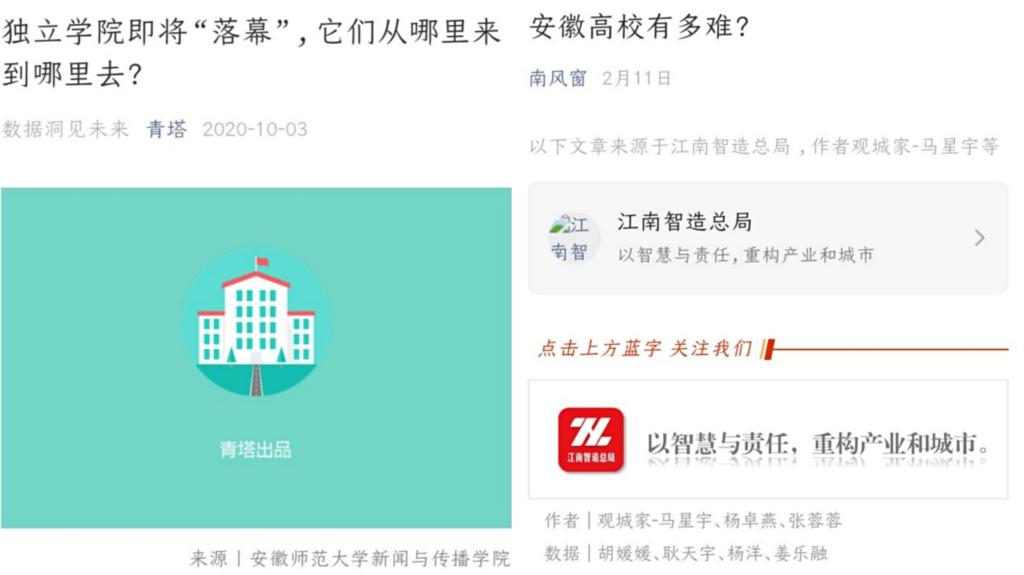 2020年暑期,2018级新闻学专业张蓉蓉同学邀请马星宇老师作为社会实践团队指导老师,组建基于信息公开的数据新闻创作团队,15名团队成员分别来自新闻学、广告学、网络与新媒体三个专业的2018级、2019级两个年级。团队暑期的创作成果《独立公司即将“落幕”,它们从哪里来到哪里去?》在微信公众号青塔发布,搜狐、新浪等多家新媒体纷纷转载,随后,团队作品《独立公司20年:半数待转设 “谢幕”大不易》《为教育花钱,那个省最“壕”》和《安徽高校为什么这么难》分别在《中国科学报》、科学网公众号和南风窗公众号发表,累计阅读量超10万+。团队成员2018级网络与新媒体专业的胡媛媛同学表示:“数据新闻本身具有的严谨性要求我们要确保数据的准确性,一遍一遍地核实数据,锻炼着我们的耐心。从布置任务到选题一基本结束,我们不仅仅是完成了实践的任务,更重要的是学会了团队间的配合与协作。”