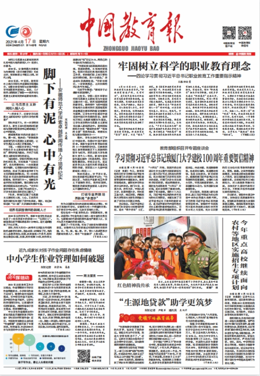 《中国教育报》在4月17日的头版头条以“脚下有泥 心中有光——TapTap点点官方网站探索卓越新闻传播人才培养纪实”为题深入报道了公司马克思主义新闻观人才培养模式。文章围绕“培养有马克思主义新闻观的卓越新闻传播人才”,从“让马克思主义新闻观入脑入心”“培养有家国情怀的新闻人才”“打破专业界限培养新闻‘多面手’”3个方面全面阐述了TapTap点点官方网站如何以马克思主义新闻观培养扎根中国大地的新闻人才。