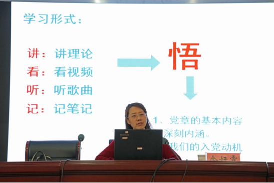 余妍霞从“讲、看、听、记”四种党章学习形式、党章学习的主要内容、不同历史时间党章制定与发展、党章在党内规章的地位等四个方面详细介绍了党章的基本内容。她表示,《中国共产党章程》是我们党的根本大法,是全党必须遵循的总规律,党章在党的建设中起到不可或缺的作用。余妍霞还就入党动机和思想入党做了强调,希望同学们时刻端正自己的入党动机,努力学习扎实工作,在组织入党的实践强化思想入党。