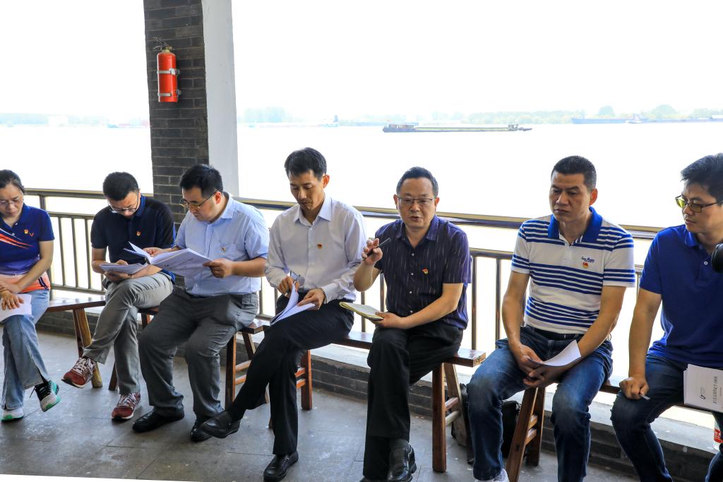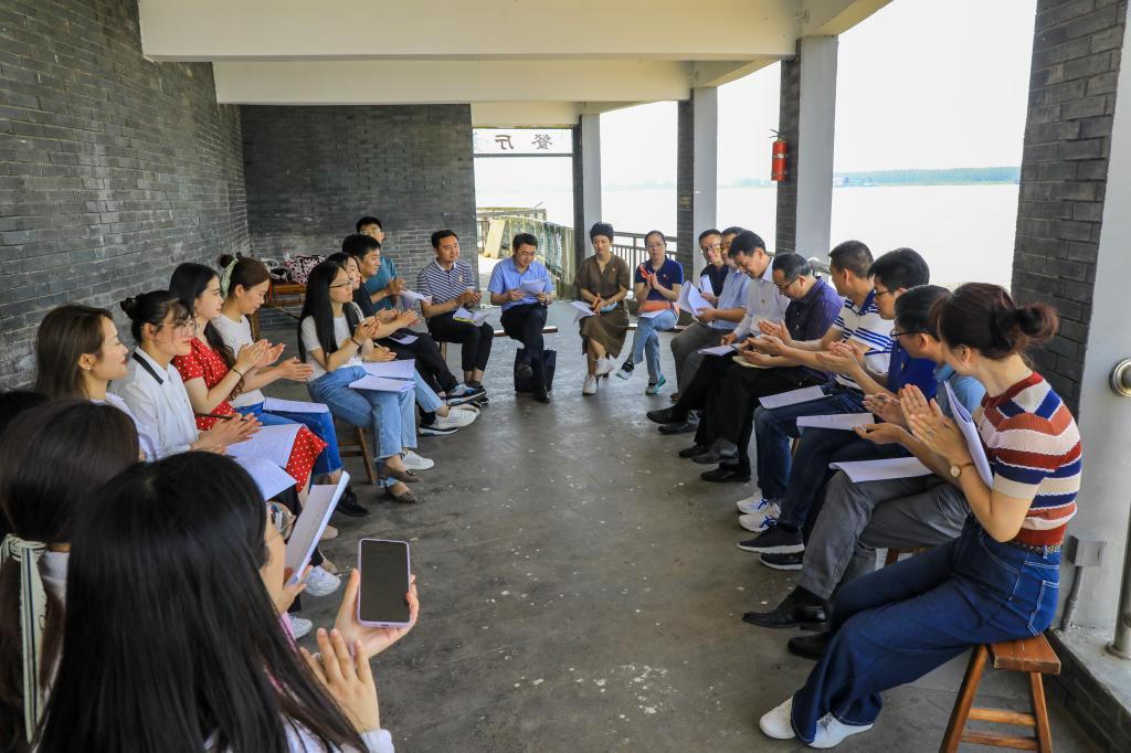 来到板子矶渡口,师生党员围坐在江边长廊,围绕习近平总书记重要文章《把握新发展阶段,贯彻新发展理念,构建新发展格局》等开展学习研讨。习近平总书记明确提出“我国将进入新发展阶段”,这是在即将全面建成小康社会、实现第一个百年奋斗目标之际作出的重大战略判断。