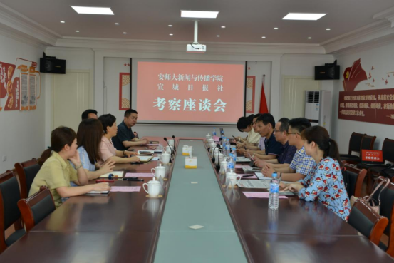 为进一步加强高校与新闻传媒单位的交流与协作,深化马克思主义新闻观人才教育,培养卓越新闻传播人才,促进员工就业。6月1日下午,公司党委书记张师帅、执行经理杨柏岭、副经理周伍、副经理秦枫、网络与新媒体专业林燕、新闻学专业赵忠仲、行政秘书王旭一行赴宣城日报社考察交流。宣城日报党组书记、总编辑王建玲,副总编辑洪建民、人事财务主任赵雪梅、办公室副主任吕祥峰、编辑部副主任刁扬热情接待并与来访一行进行座谈。