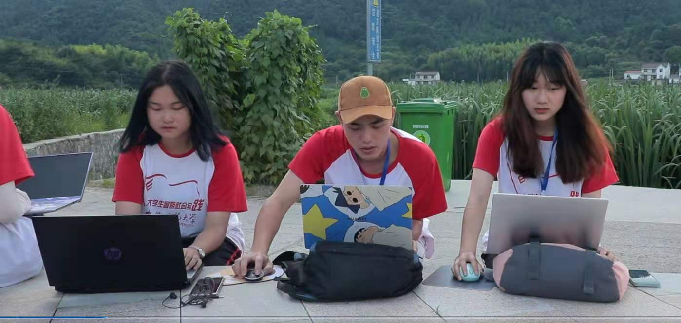 下午4点半,张师帅一行来到马畈村茭白产业基地,现场观摩了以乡村振兴为主题的新闻现场。在茭白田地旁,有同学深入田野采访收割茭白的农民,有同学现场编写稿件,有同学运用电脑进行可视化设计和绘图,有同学为茭白代言出镜报道,有同学与老师们互动拍摄短视频,有同学为老师们讲解无人机拍摄过程,有同学用相机记录着活动活动……生动展现了一堂流动的融媒体创作田间课堂。