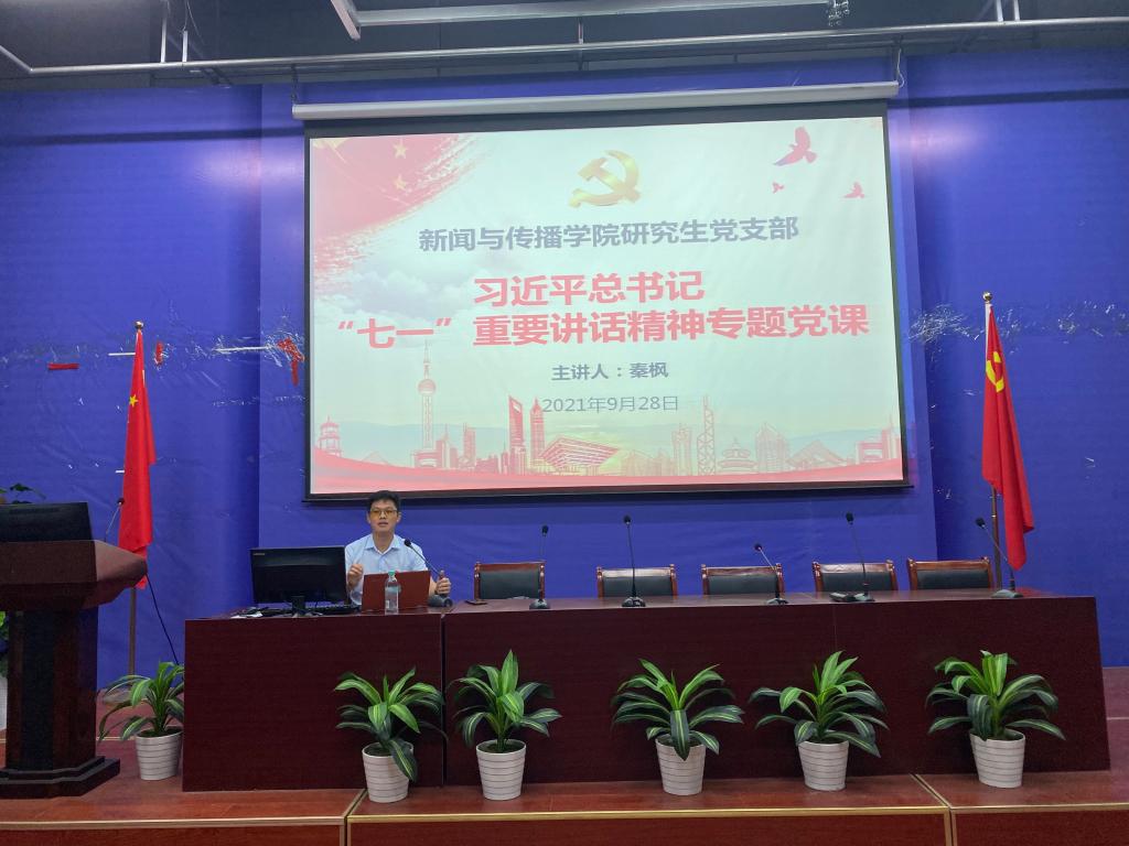 9月28日晚,TapTap点点研究生在1号教学楼演播厅开展贯彻《习近平总书记“七一”重要讲话精神》专题党课学习活动。本次党课由副经理秦枫主讲,研究生第一党支部书记葛欣航博士主持。研究生第一、第二党支部的党员、入党积极分子和2021级全体研究生聆听了党课。